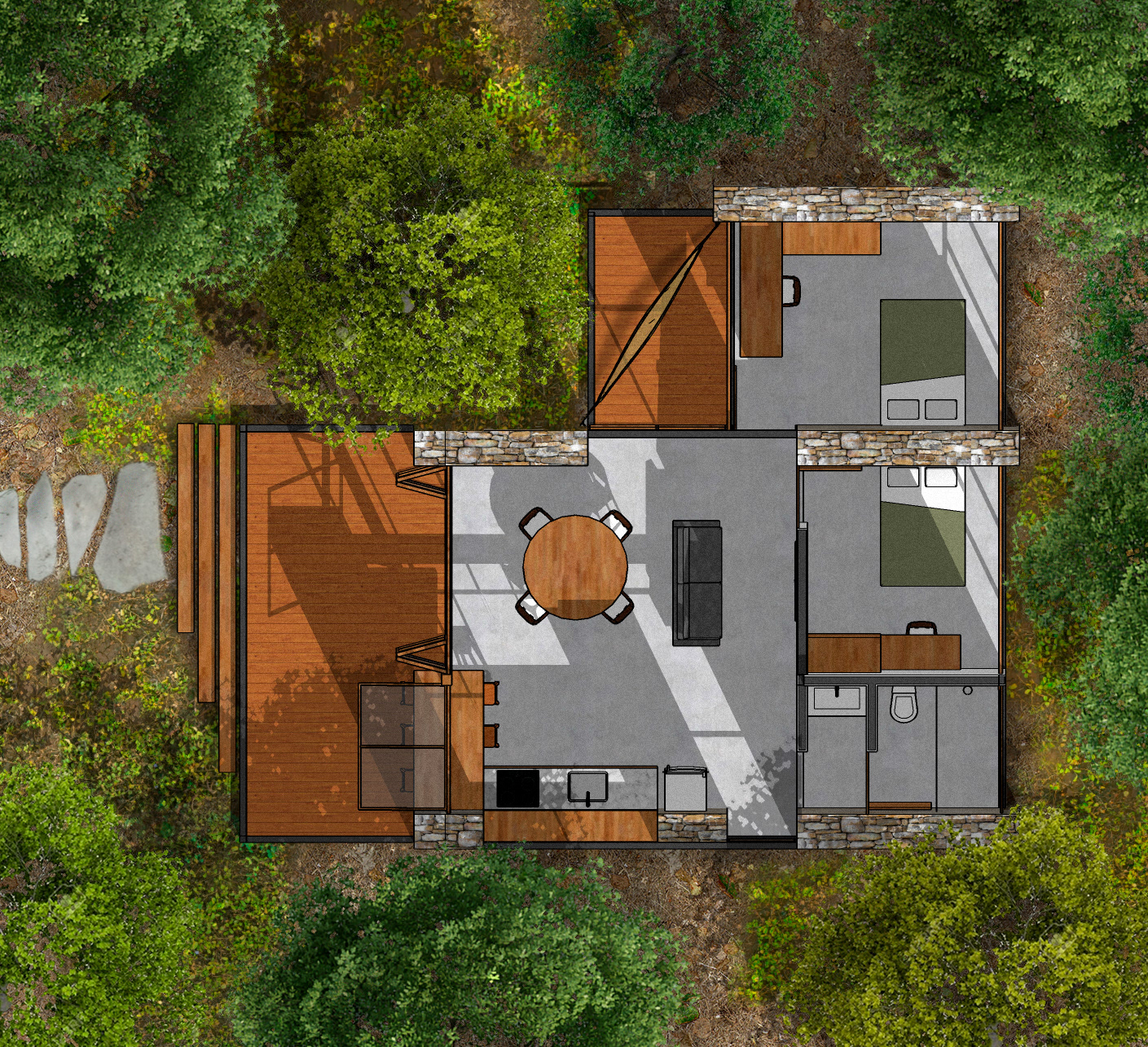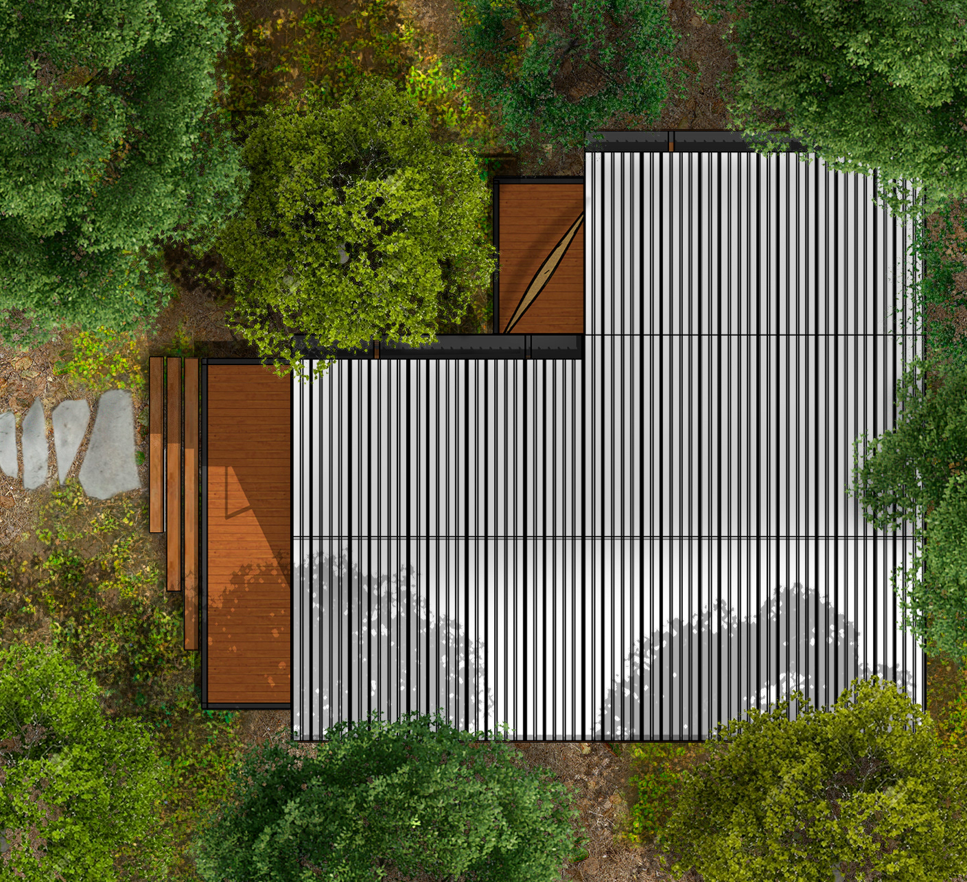 Localizada no meio da mata, a 10 km de Pirenópolis, a casa do Vale chegou de mansinho, se encaixando em meio às árvores.